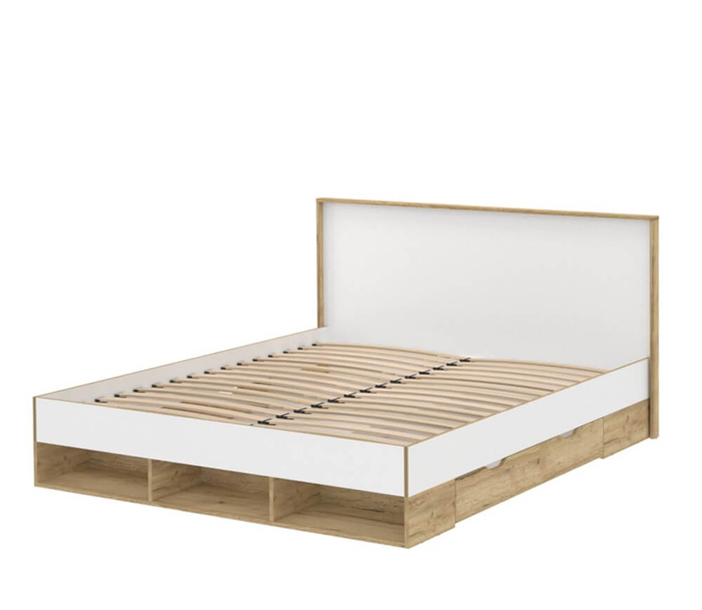 Купить двуспальную кровать Scandi SC-К160 (белый платинум / дуб золотой) по выгодной цене. Доставка в Минск, Гомель, Могилев, Брест, Гродно, Витебск и другие города Беларуси. Производитель: ООО «Центр мебели Интерлиния» (г. Брест).