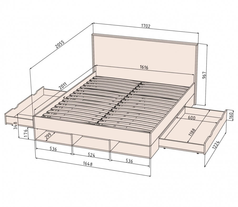 Подробное описание и размеры двухспальной кровати Scandi SC-К160: