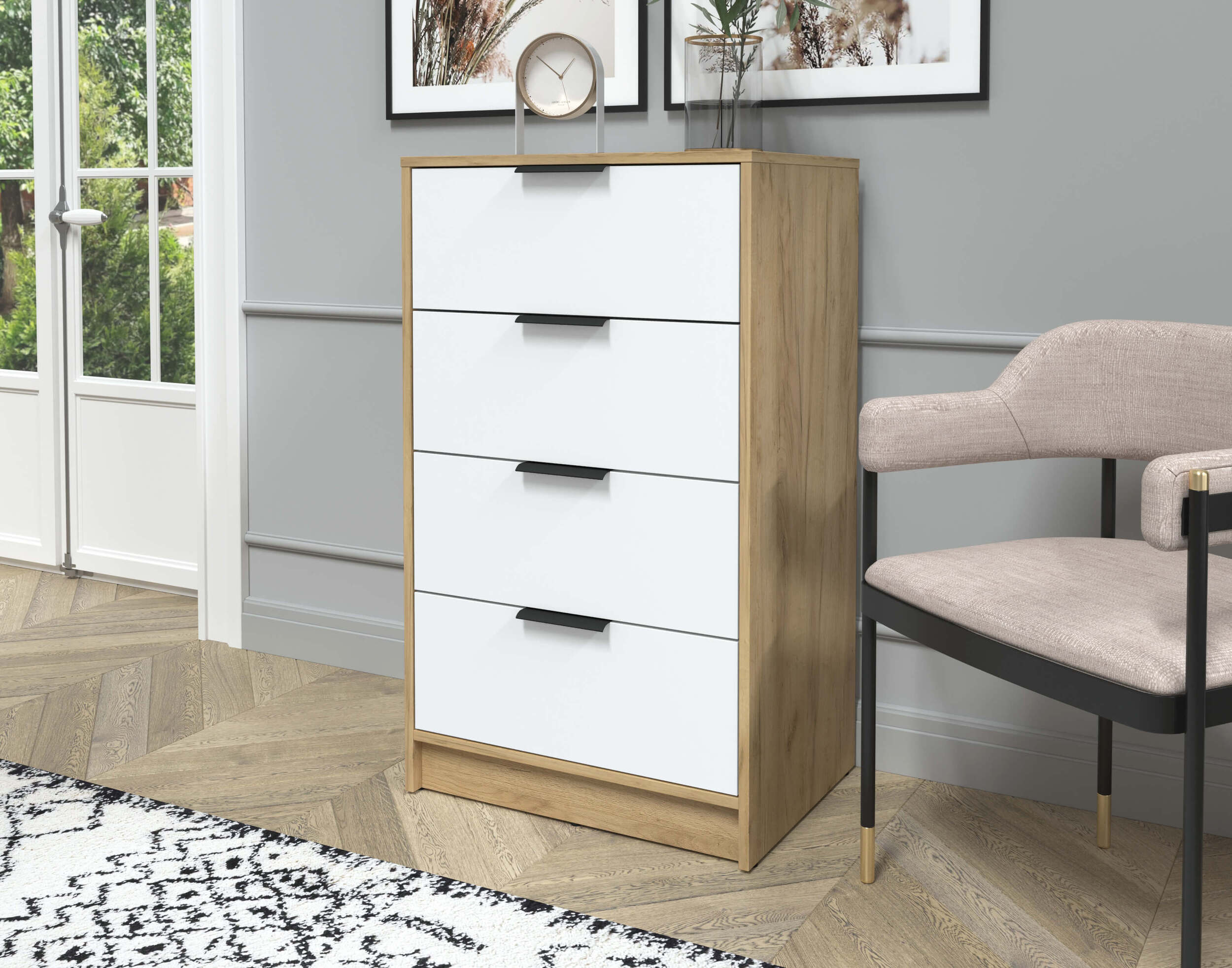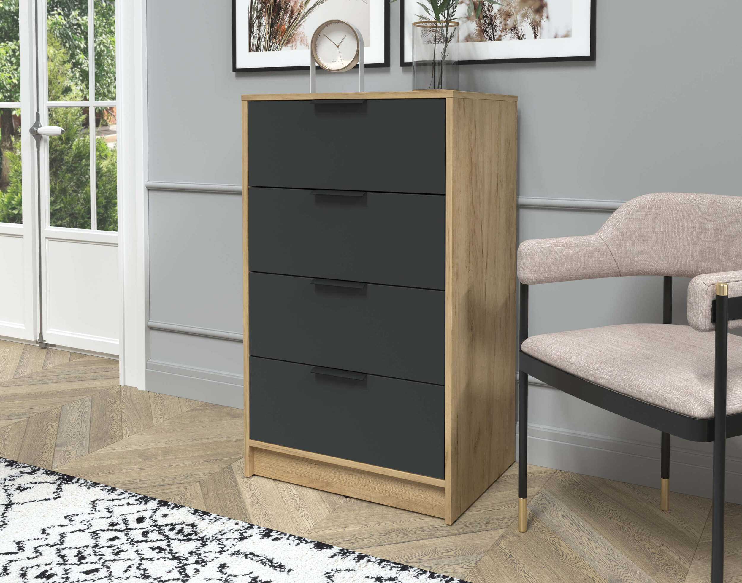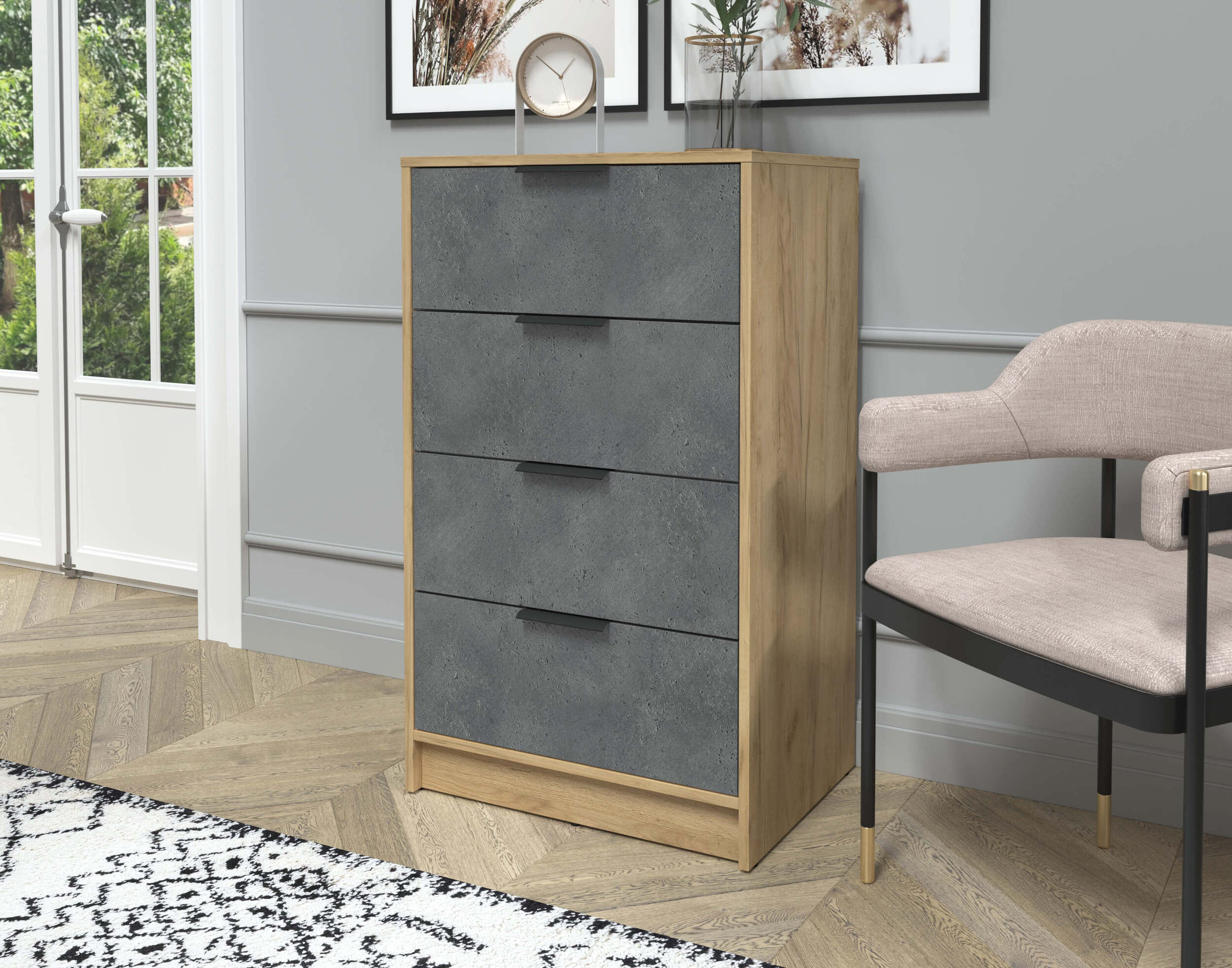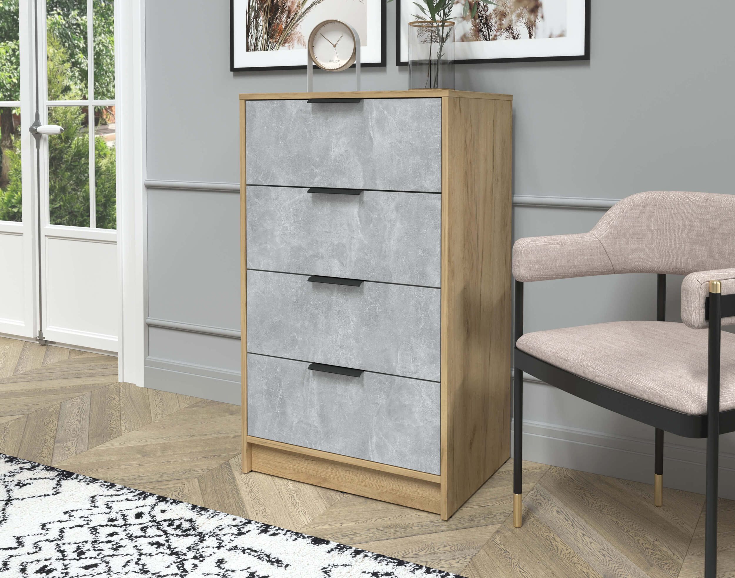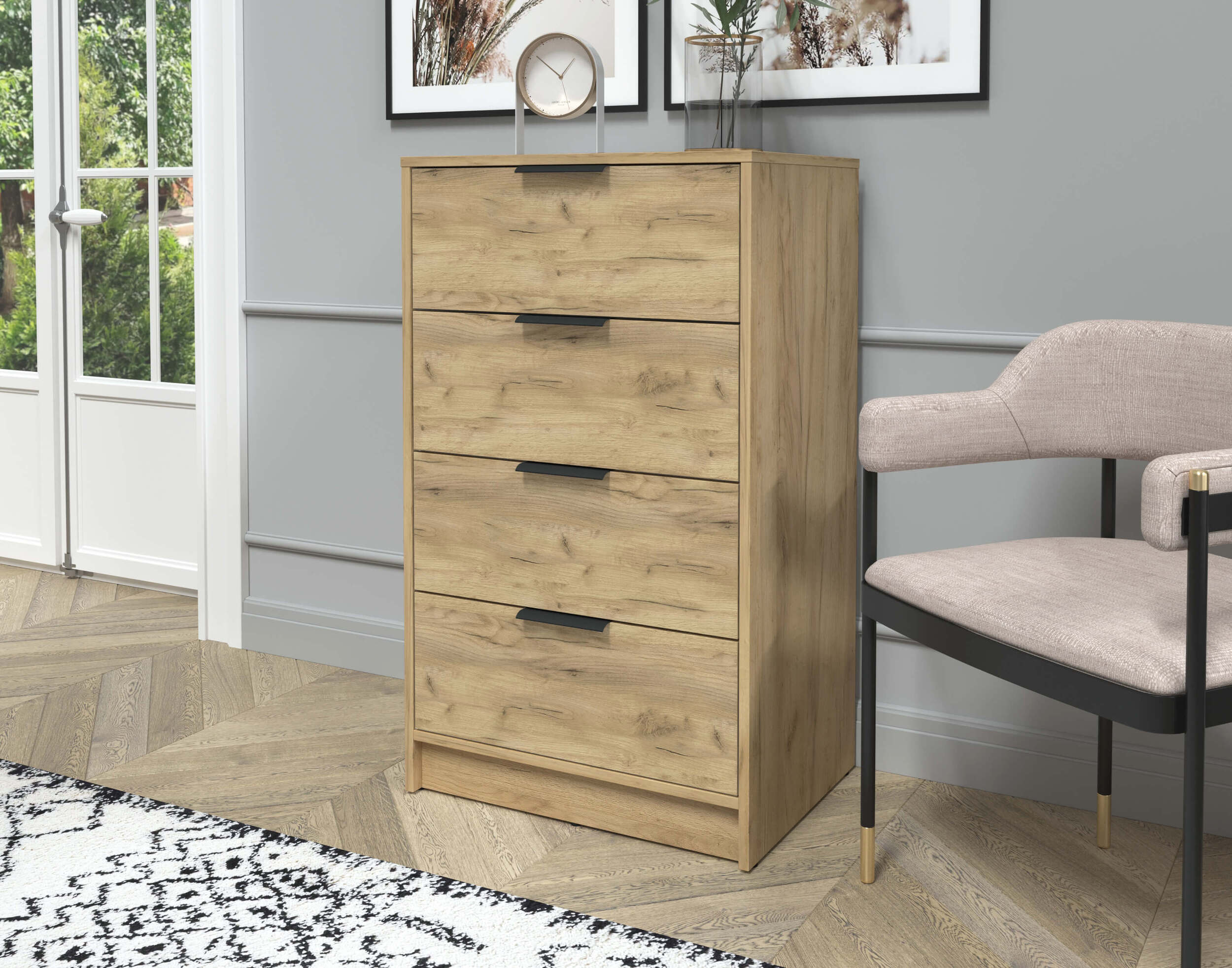 Комод Концепт КТ-К60 дуб золотой — это стильный и практичный комод, который идеально подойдет для любого интерьера. Оснащен четырьмя просторными выдвижными ящиками, обеспечивающими удобное хранение одежды, белья или других предметов. Надежная конструкция и качественные материалы гарантируют долговечность и устойчивость. Компактный размер позволяет легко разместить его в спальне, гостиной или прихожей, создавая уют и порядок в вашем доме.