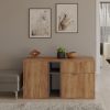 Комод Рио-7 — это комод с практичным дизайном: по бокам встроены полки, которые скрыты за дверьми. Справа выдвижной ящик, который подойдет для хранения документов или мелочей. Комод идеально подходит для хранения книг, документов и вещей. Центральная ниша добавляет возможность разместить декоративные элементы или книги. Комод Рио — это стильный и функциональный элемент интерьера, который легко впишется в гостиную, спальню или прихожую.