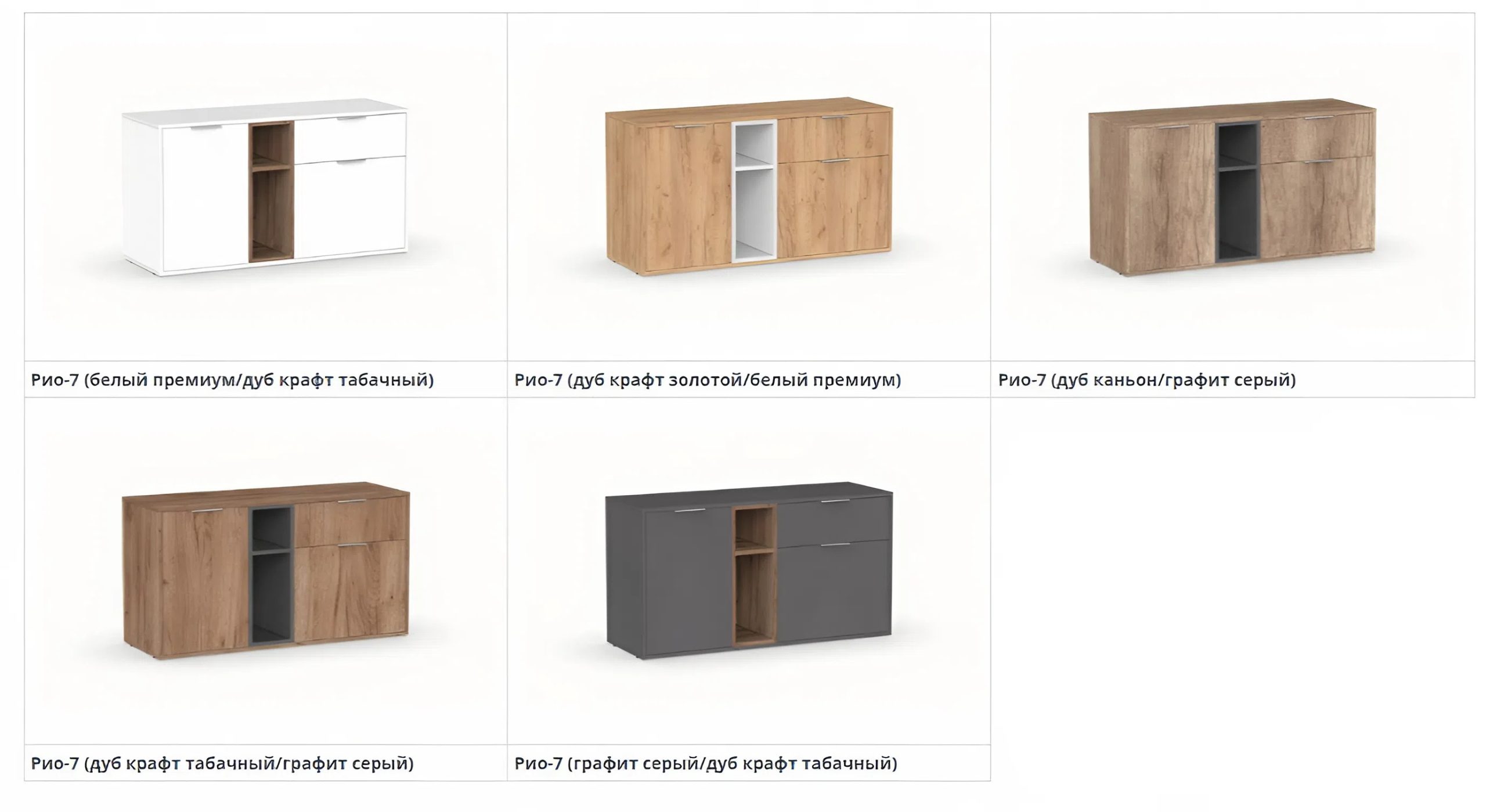 Подробное описание, размеры, материалы и комплектующие комода Рио-7: