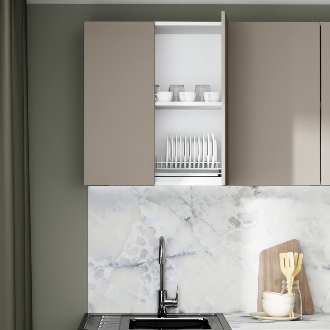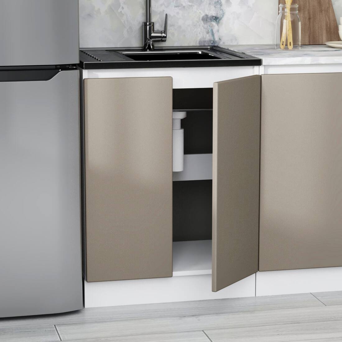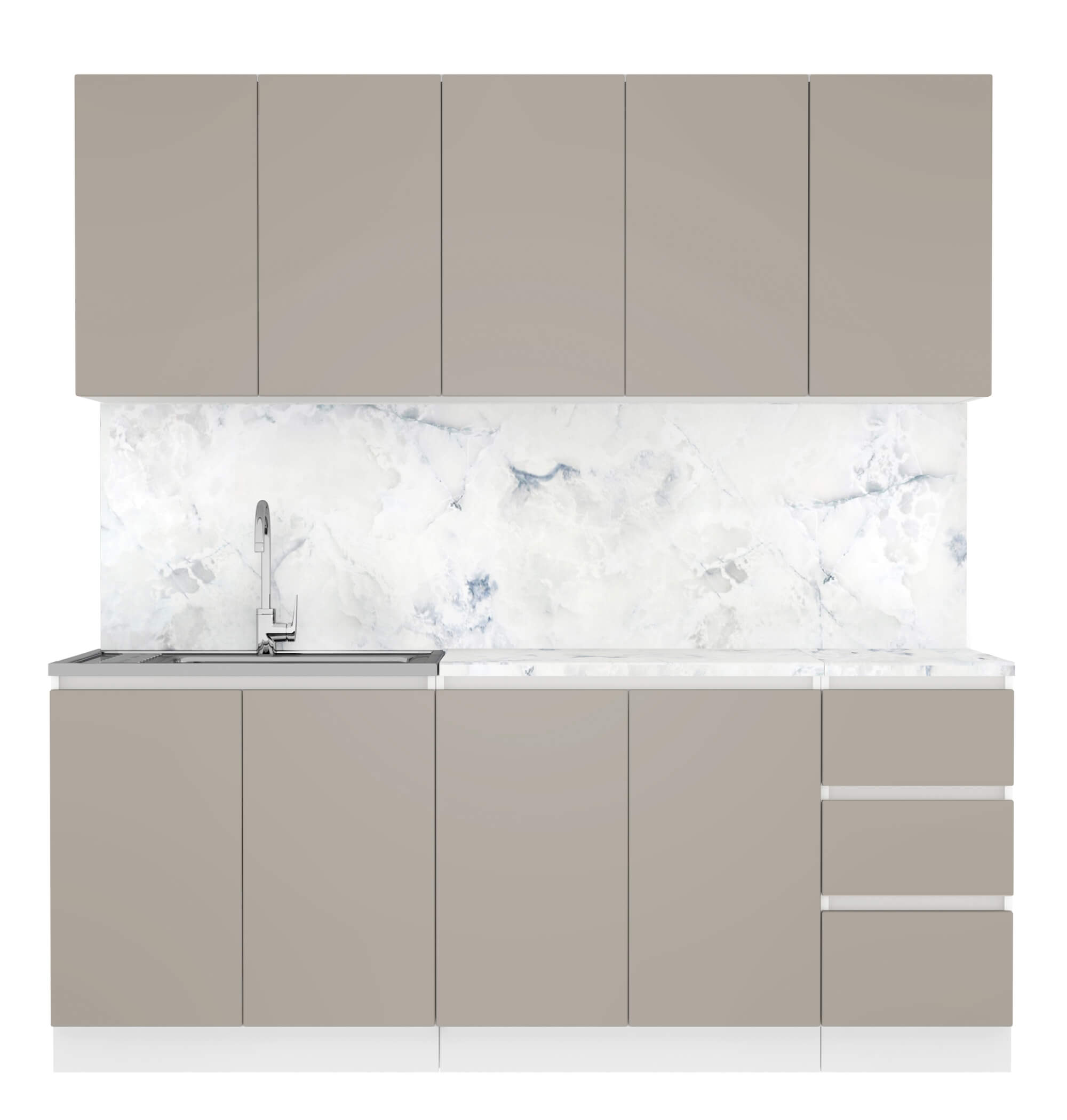 Гарнитур Мэри разработан с учетом типовых квартир: размерный ряд от 1,4 м до 2,0 м позволяет легко подобрать готовый комплект под вашу площадь. Но вы не ограничены стандартами: кухня модульная, и при необходимости к базовому набору можно заказать дополнительные верхние или нижние ящики. Это позволяет собрать кухню вашей мечты, задействовав всё полезное пространство.
