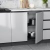 • Высота напольных нижних шкафов (с учетом столешницы 26 мм и цоколя 100 мм): 858 мм.