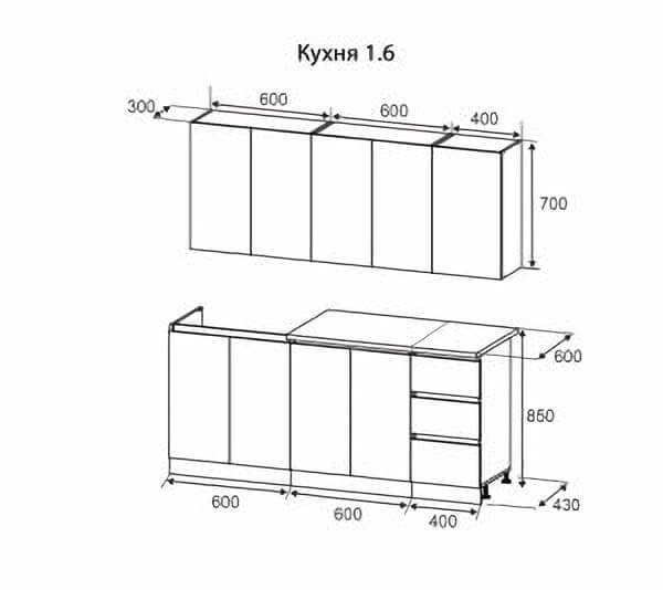 • Глубина напольных нижних шкафов: 600 мм (по корпусу 470 мм).