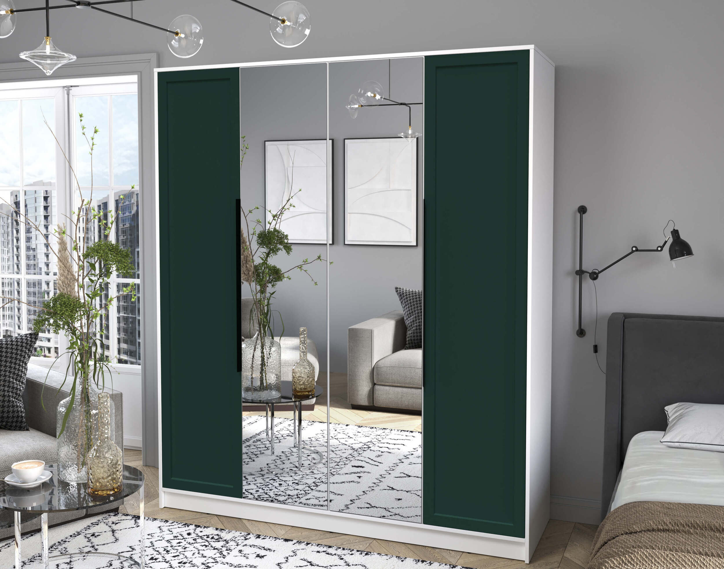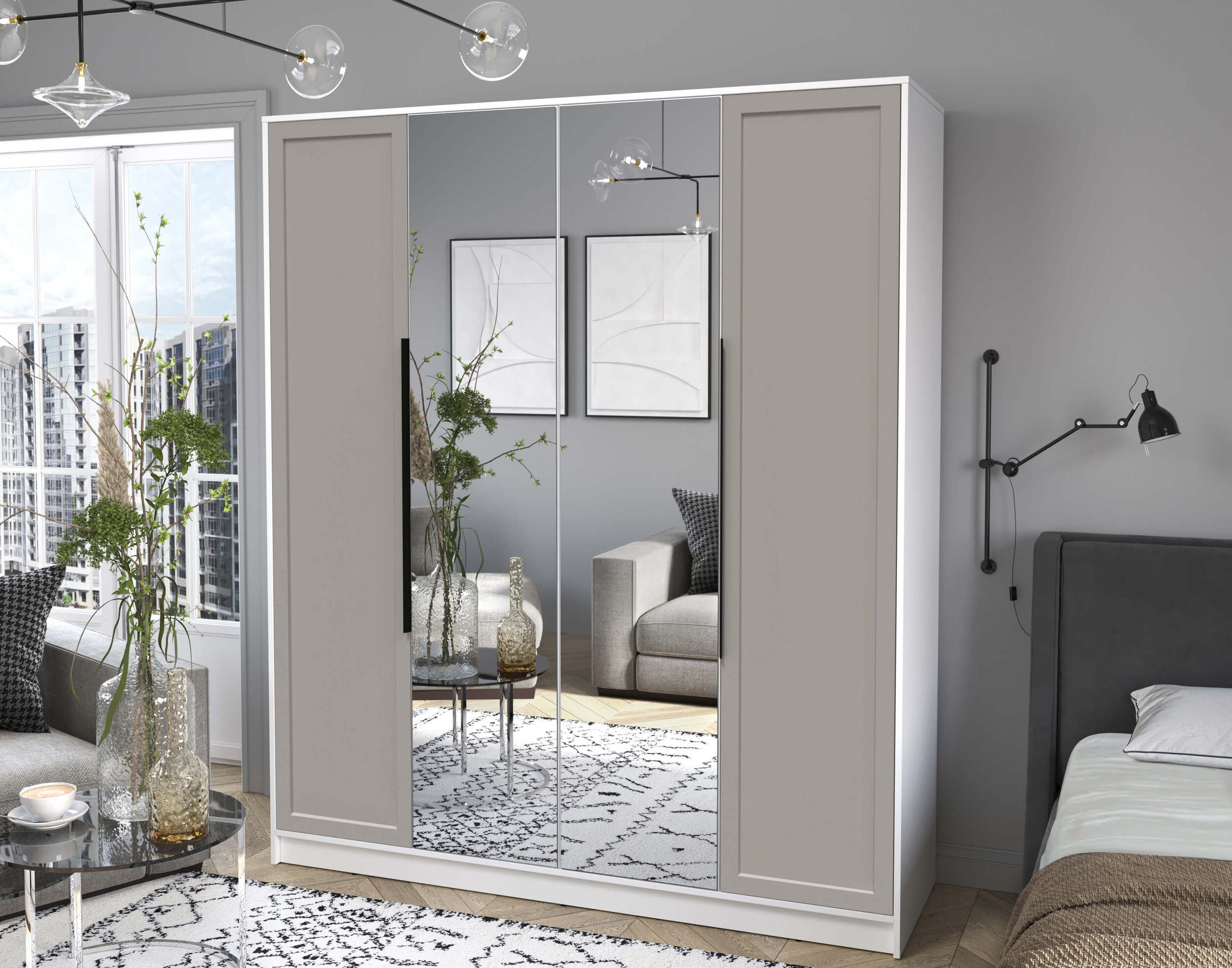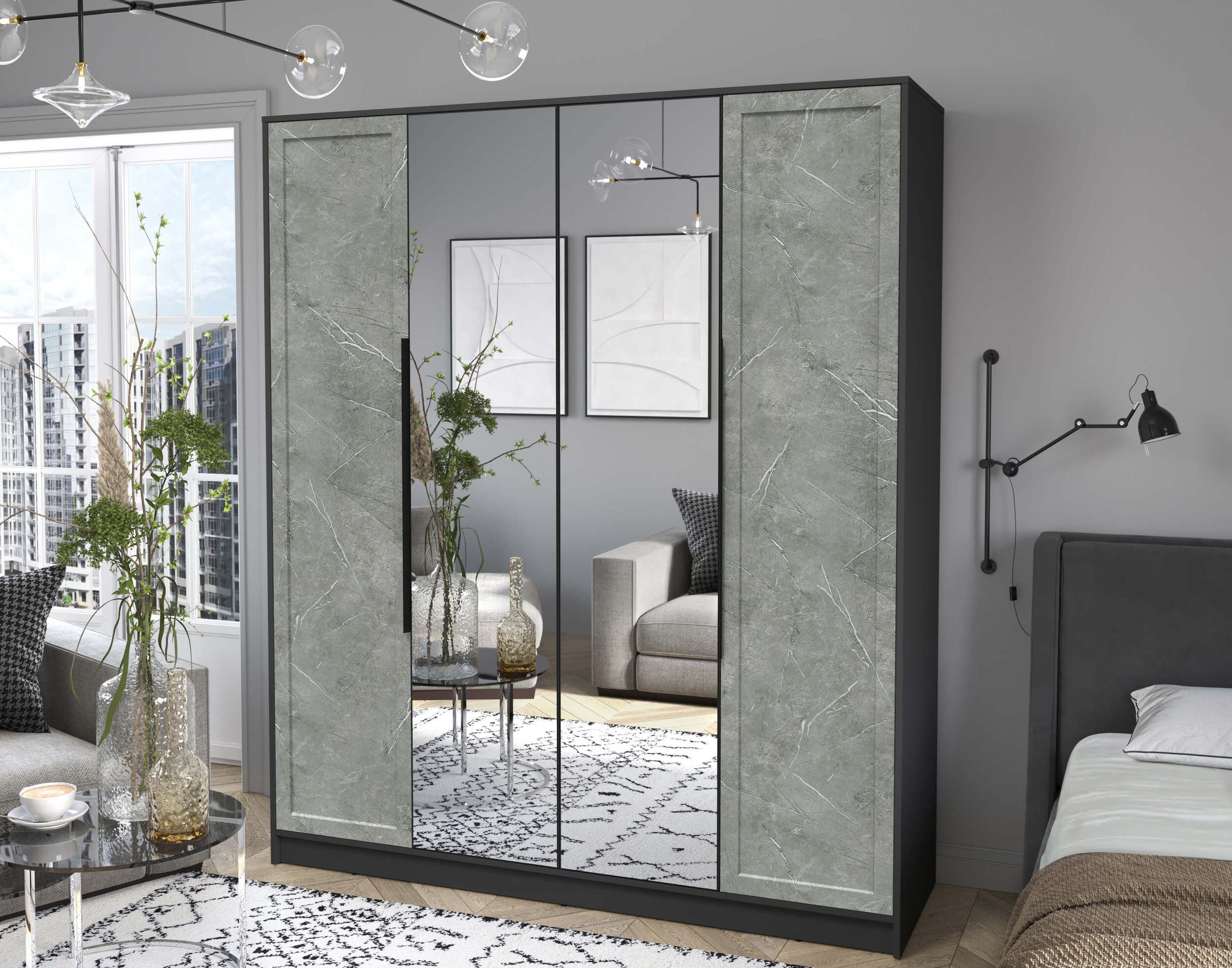 Шкаф четырехстворчатый распашной Концепт КТ-Ш4 Тренд с зеркалом антрацит/керамика