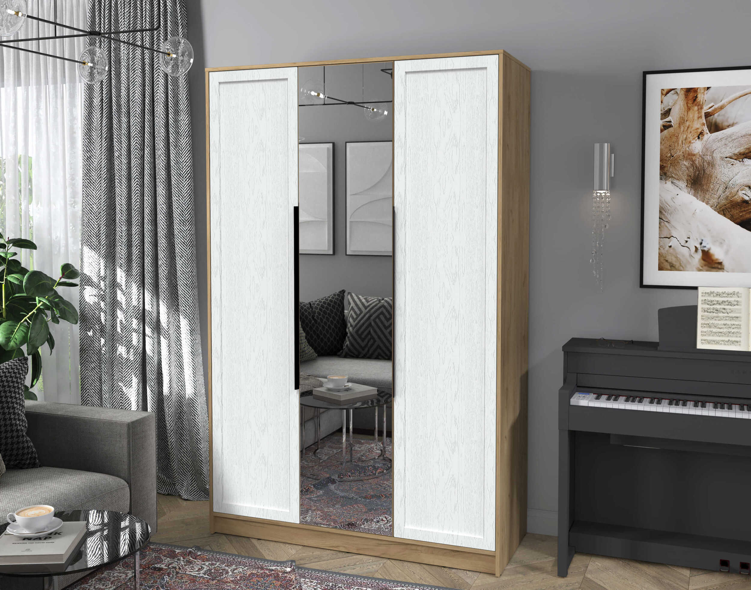 Купить шкаф 3-х створчатый распашной Концепт КТ-Ш3 Тренд с зеркалом по выгодной цене. Доставка в Минск, Гомель, Могилев, Брест, Гродно, Витебск и другие населенные пункты Беларуси. Производитель: ООО «Центр мебели Интерлиния» (г. Брест).