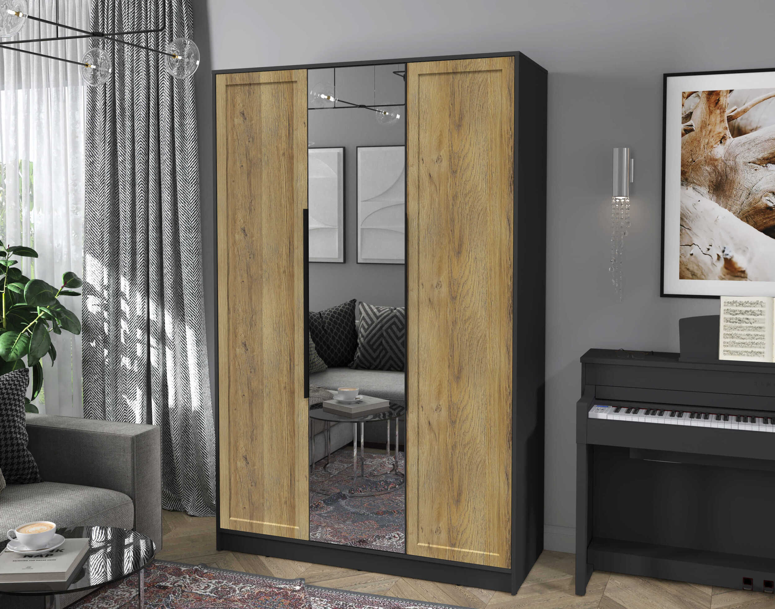 Шкаф с распашными дверями Концепт КТ-Ш3 Тренд с зеркалом — это стильный шкаф с тремя распашными дверьми и большим зеркалом, который идеально подойдет для организации вашего пространства. Внутри вы найдете удобную штангу для одежды, прочные полки для хранения аксессуаров и вещей, а также вместительные ящики для мелочей. Ниша под штангой обеспечивает дополнительное место для хранения или удобного доступа к часто используемым предметам. Надежная конструкция и современный дизайн делают этот шкаф отличным выбором для любой спальни или гардеробной. Зеркало визуально расширит пространство вашей комнаты. Вы можете выбрать любую расцветку, которая идеально подойдет для вашего интерьера.