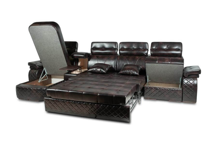 Угловой диван «Пуше ММ-024-04» одинаково хорошо подойдет и для большой гостиной и для небольшой комнаты. Удобное и просторное спальное место с простым механизмом трансформации «Телескоп», две вместительных ниши для хранения белья, выдвижной столик, блок независимых пружин и высокоэластичный пенополиуретан делают модель углового дивана Пуше ММ-024-04 максимально комфортной и функциональной одновременно.